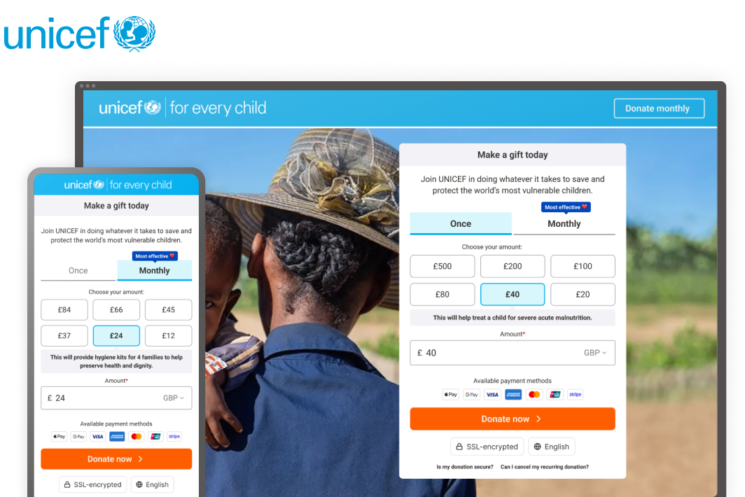 Helping UNICEF build trust and increase recurring donations through a cleaner, more reassuring online giving experience.